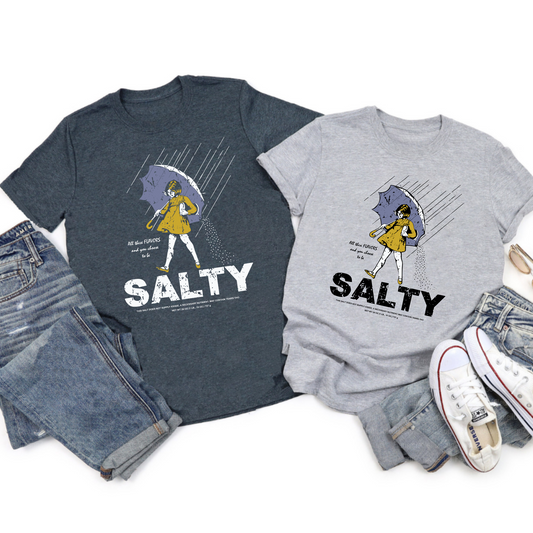 Women's "Salty Girl" Vintage T-Shirt – Trendy Umbrella Top for Her