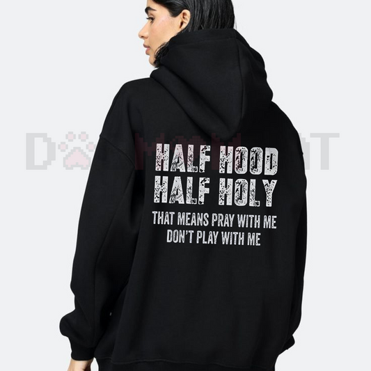 Half Hooded Half Holy Hoodie – Duality Street Style Pullover, "Play With Me Don't Play With Me" Attitude