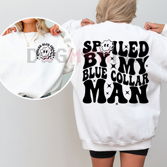 "Spoiled by My Blue Collar Man" Sweater – Cozy Crewneck, Love & Appreciation Gift for Her
