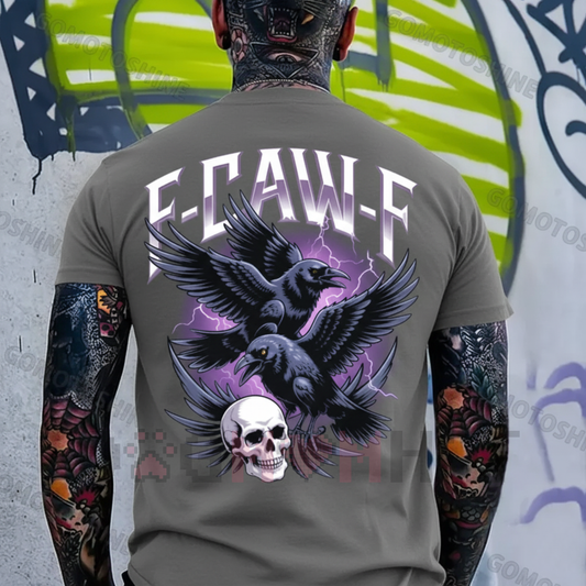 F*CK OFF Crow And Skull Print Men's T-shirt – Summer Medium Length Plain Beige Menswear Tops