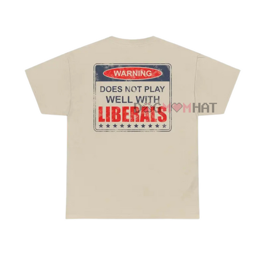 "Does Not Play Well With Liberals" T-Shirt – Patriotic Graphic Tee for Conservatives