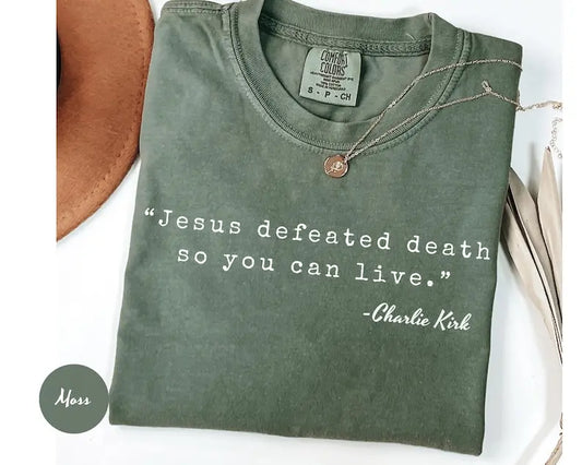 Comfort Colors Charlie Kirk "Jesus Defeated Death" Shirt