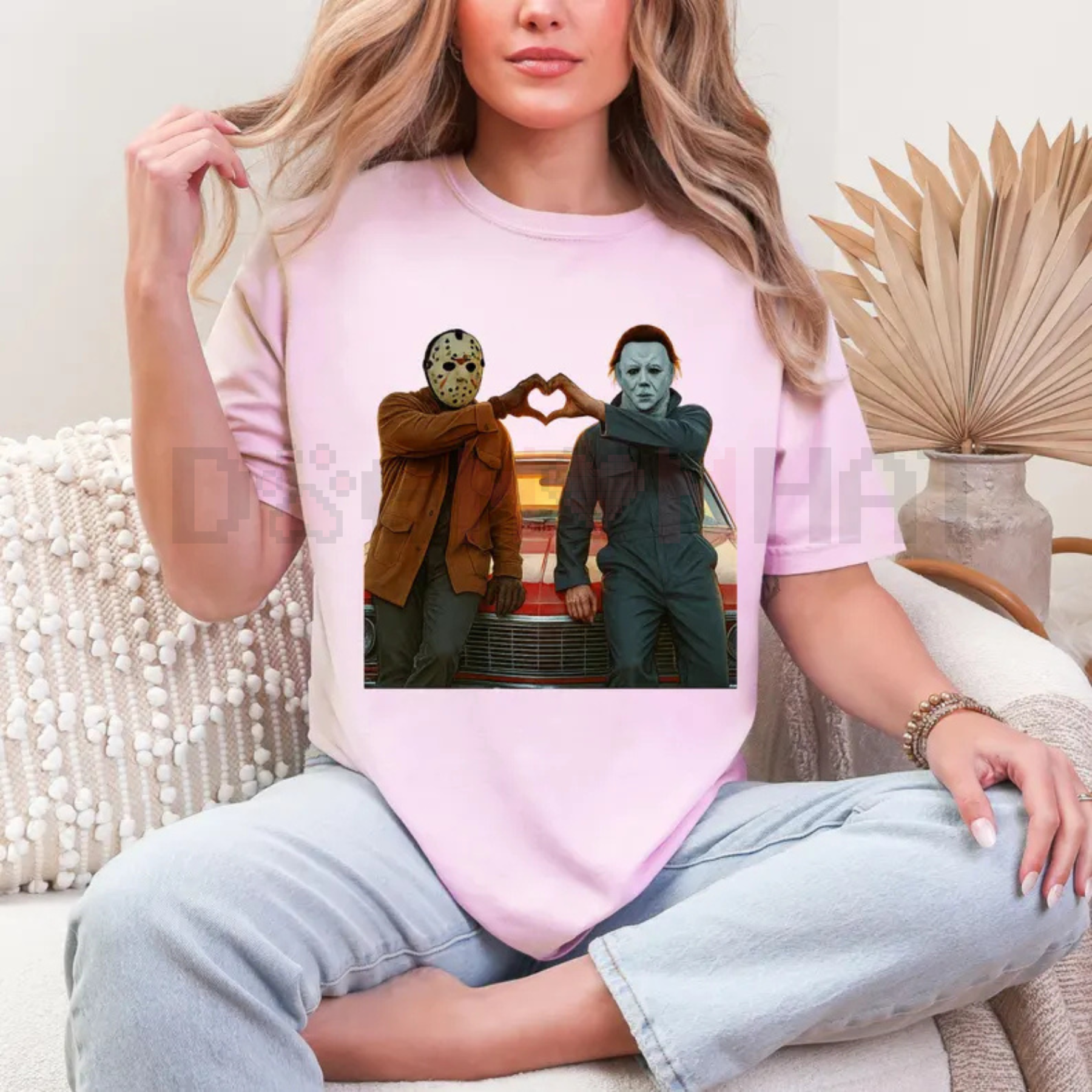 90S Vintage Retro Heart Hands Michael And Jason Halloween TShirt
