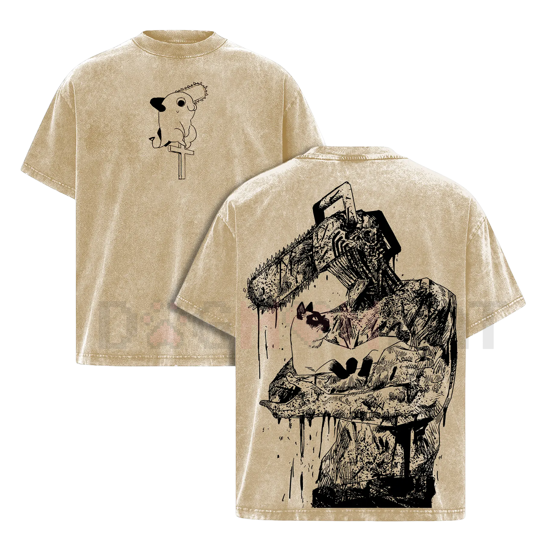 Chainsaw Man Denji T-Shirt – Vintage Washed Oversized Heavy Cotton Tee