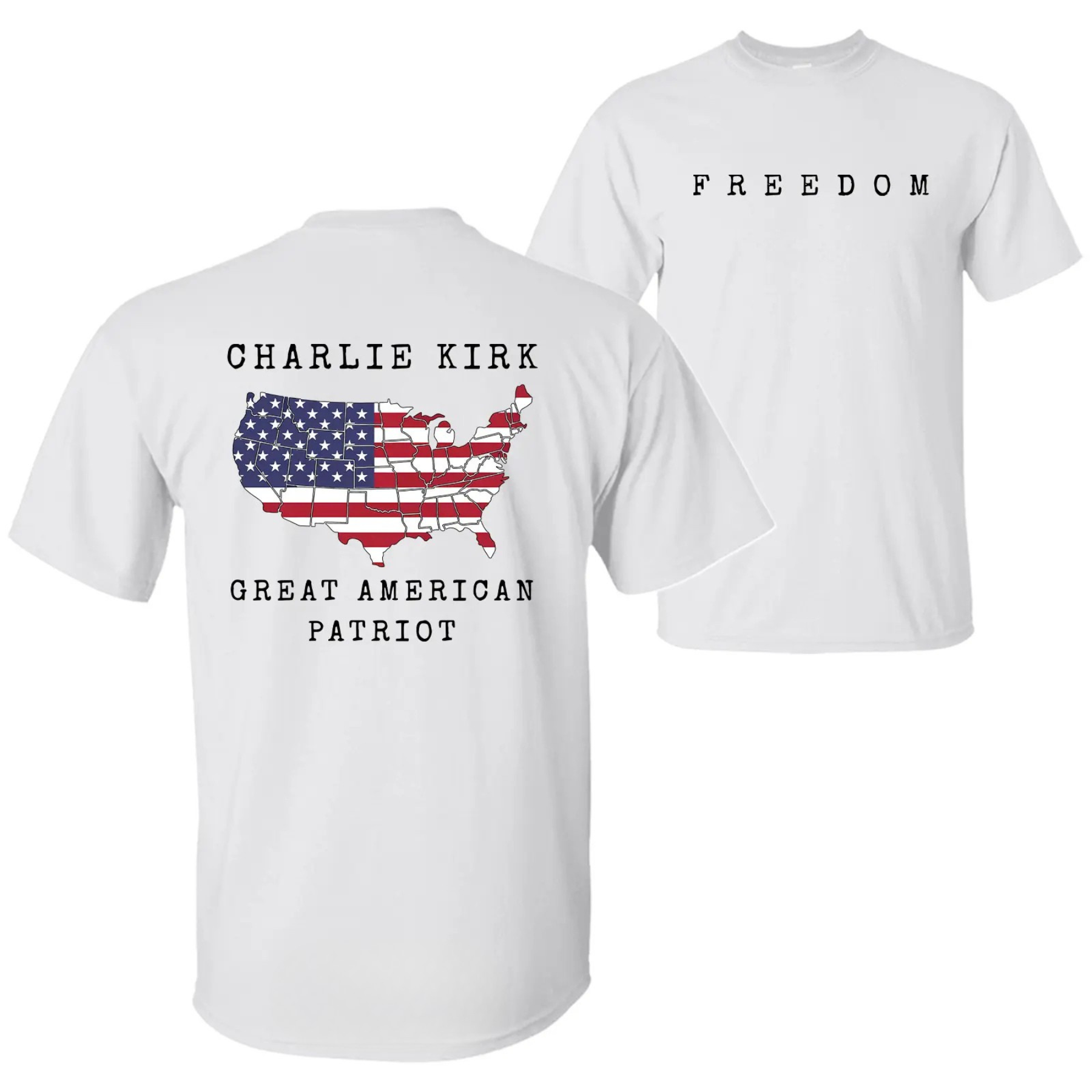 Charlie Kirk Freedom & Patriotism Graphic T-Shirt – 2-Sided Design