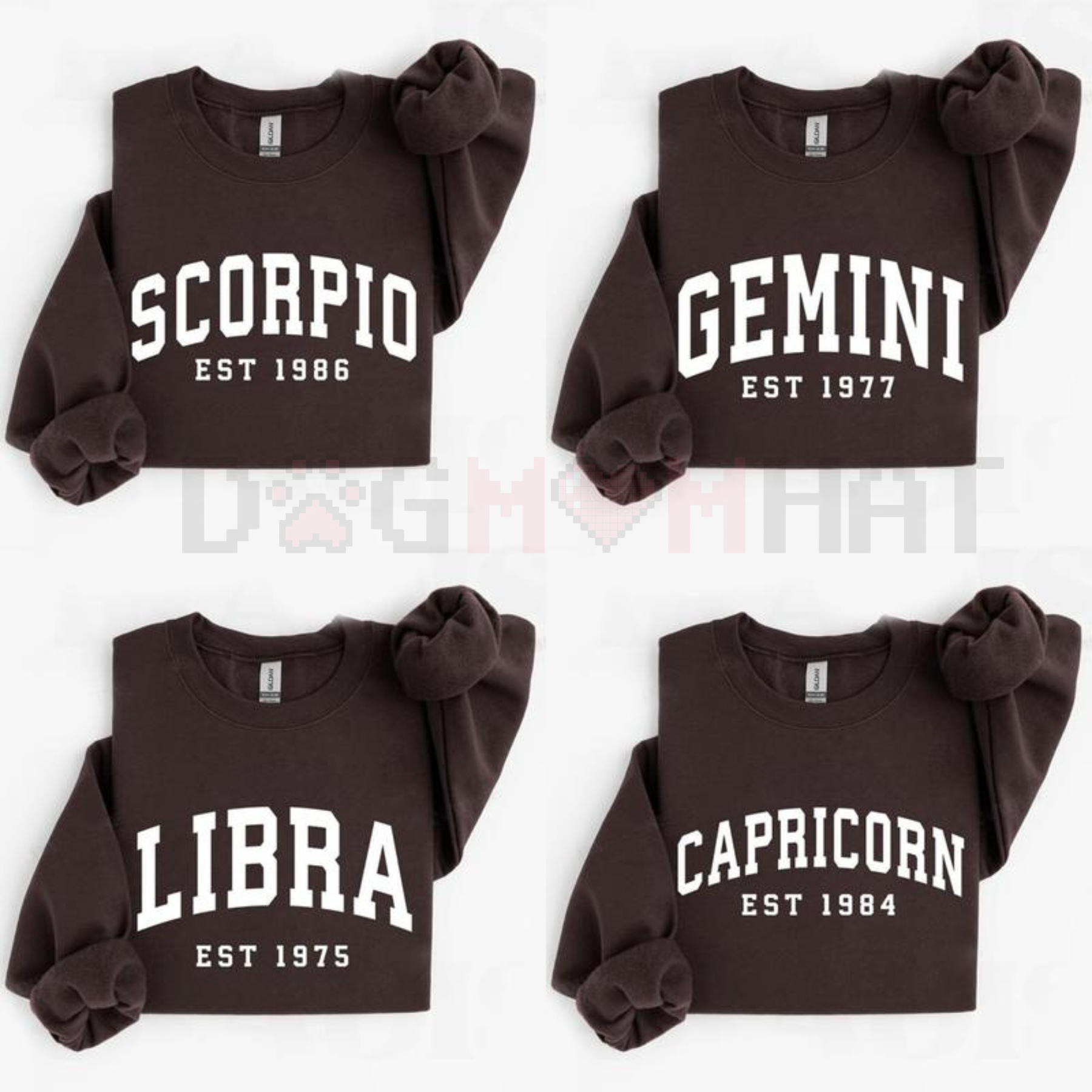 ✨🔮 Wear Your Stars. Mark Your Moment. Cozy Up to Your Cosmic Identity. The Custom Zodiac Sweatshirt with Est Year is the ultimate cozy way to celebrate personal astrology and individuality! This unique piece of apparel features a Cute Horoscope Astrology Graphic for the wearer's specific star sign, along with a personalized "Est Year"—the year they were born—making it a deeply meaningful and custom statement.