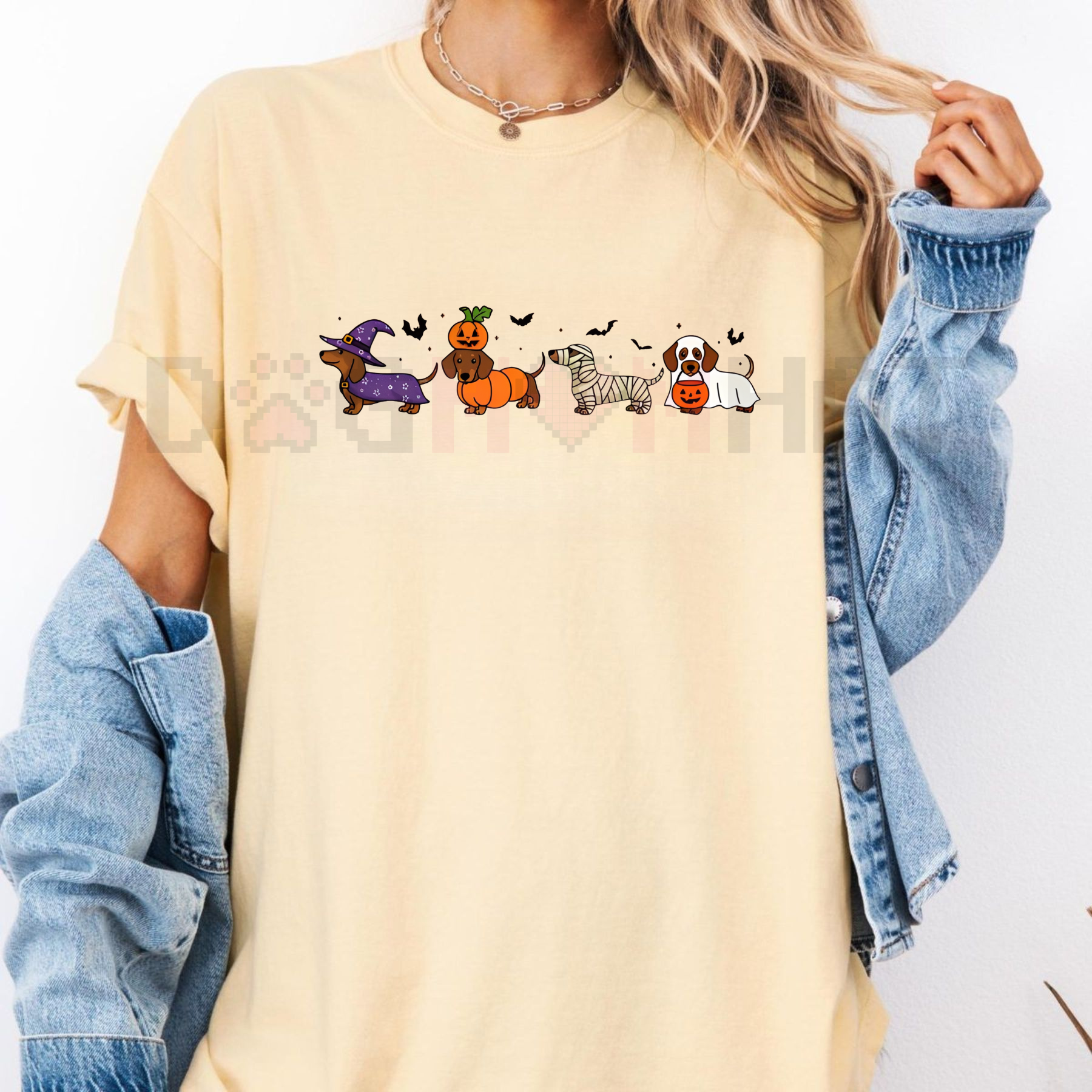 👻🌭 Spooky Season Wiener. Totally Adorable Ghost. Our Comfort Colors® Dachshund Shirt is a must-have for every Dog Lover and Dachshund enthusiast celebrating the spooky season! This tee features an irresistibly Cute Ghost graphic with an adorable Halloween Dachshund dressed up for some trick-or-treating. It’s the perfect blend of pet love and festive fun, making it an essential addition to your fall wardrobe.