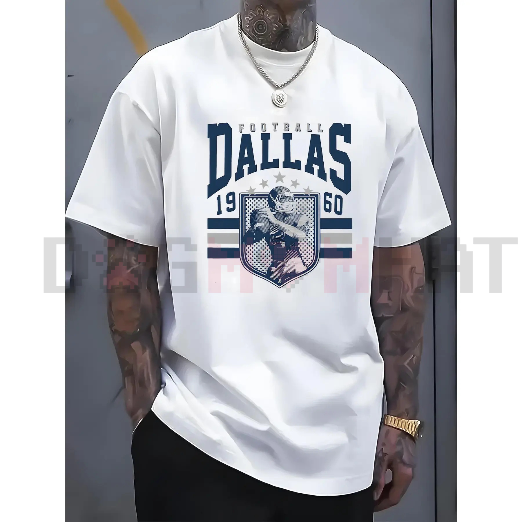 1950s Graphic: Features a stylized, vintage graphic referencing early Dallas professional football.