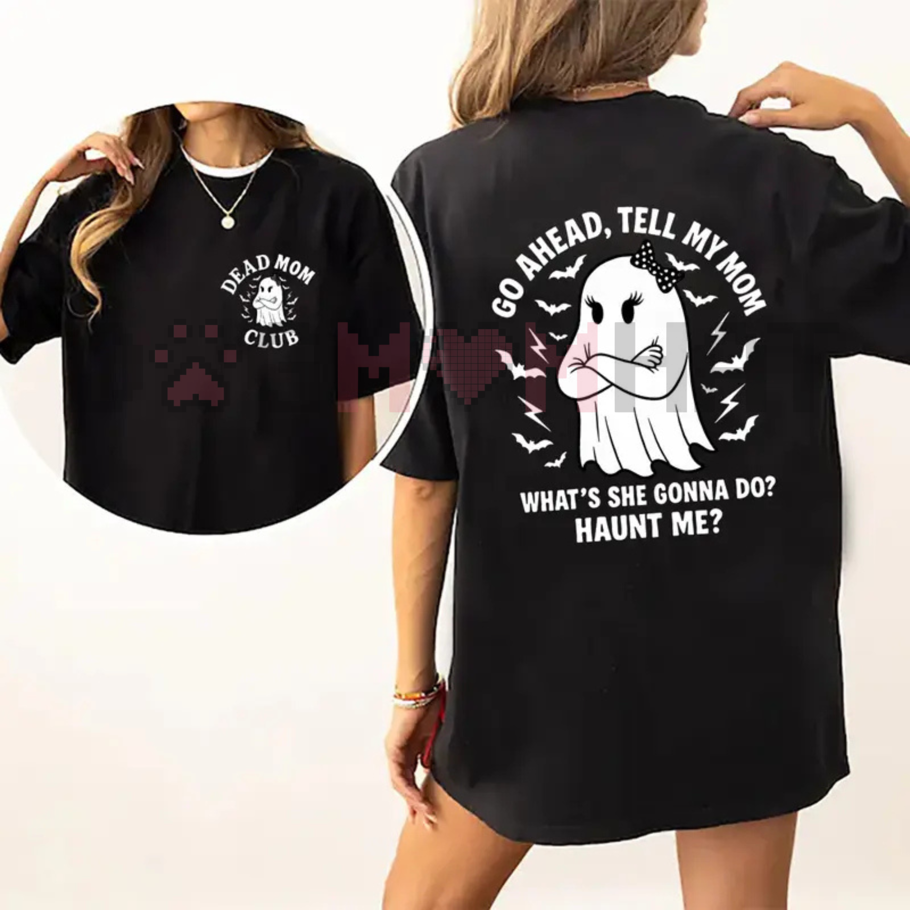 Dead Mom Club Shirt – "Tell My Mom What's She Gonna Do, Haunt Me?" Dark Humor Joke Tee, Unisex Sarcastic Apparel