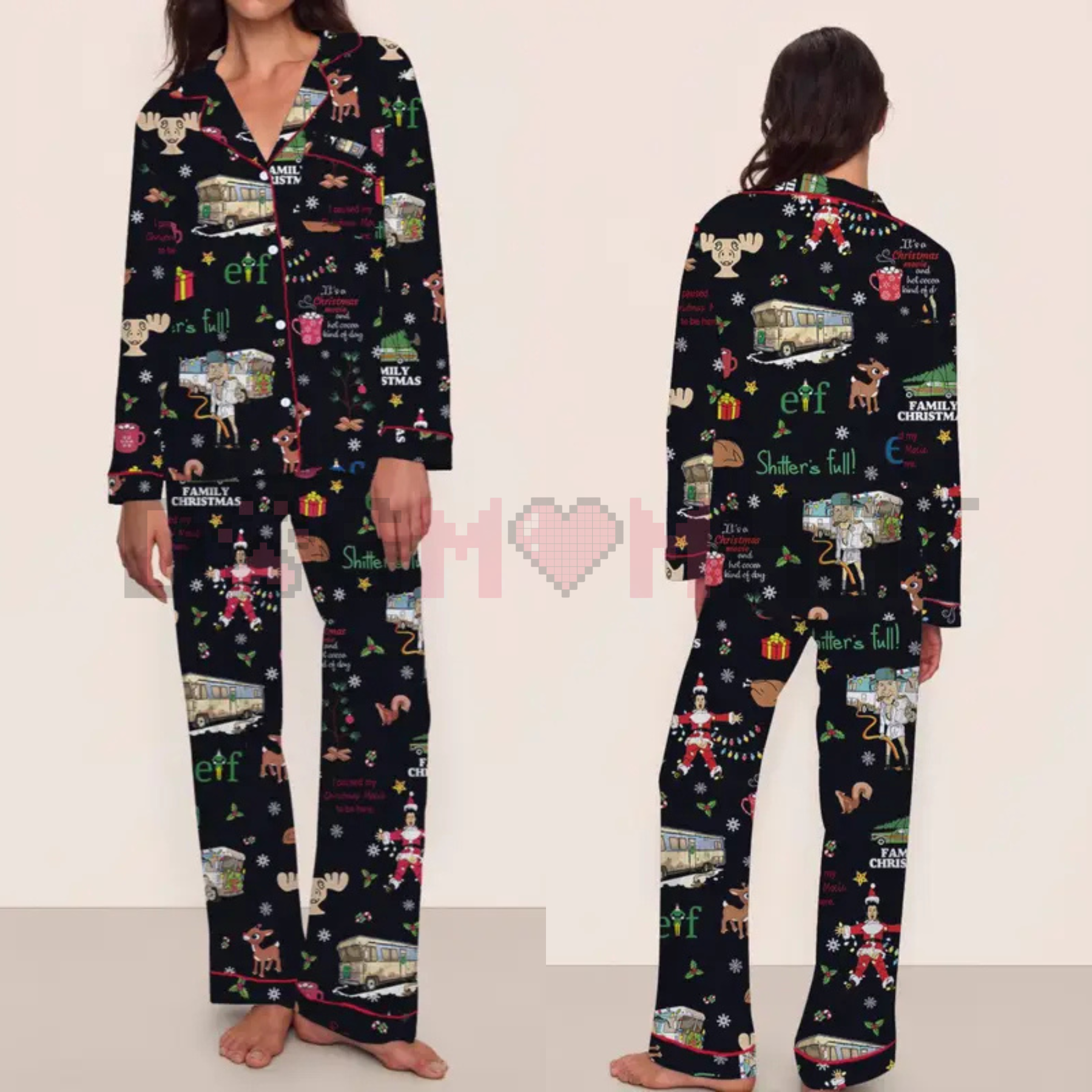 Crafted from soft, high-quality fabric, this set is designed for warmth and comfort through Fall and Winter. The refined style ensures you feel chic even while relaxing, making it a thoughtful and Cute Holiday Gift Idea. Imagine snuggling up in these while watching a classic like E.I.F. or a Clark Christmas film!