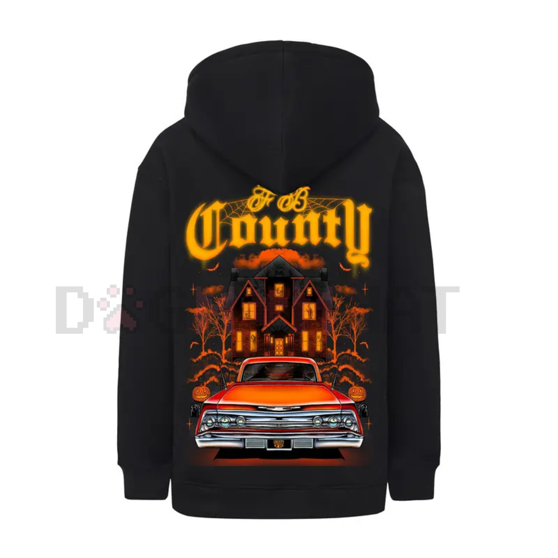 🎃👻 Old School Vibe. New School Haunt. Our FB County Heavyweight Oversized Halloween Graphic Zip-Up Hoodie is a must-have for every fan of the spooky season who loves a classic, roomy fit. This hoodie is a perfect blend of a bold Halloween graphic and a heavyweight, comfortable feel, making it an essential addition to your seasonal wardrobe. It’s the ultimate top for a cool autumn night, a spooky movie marathon, or a casual day out showing your love for all things creepy.