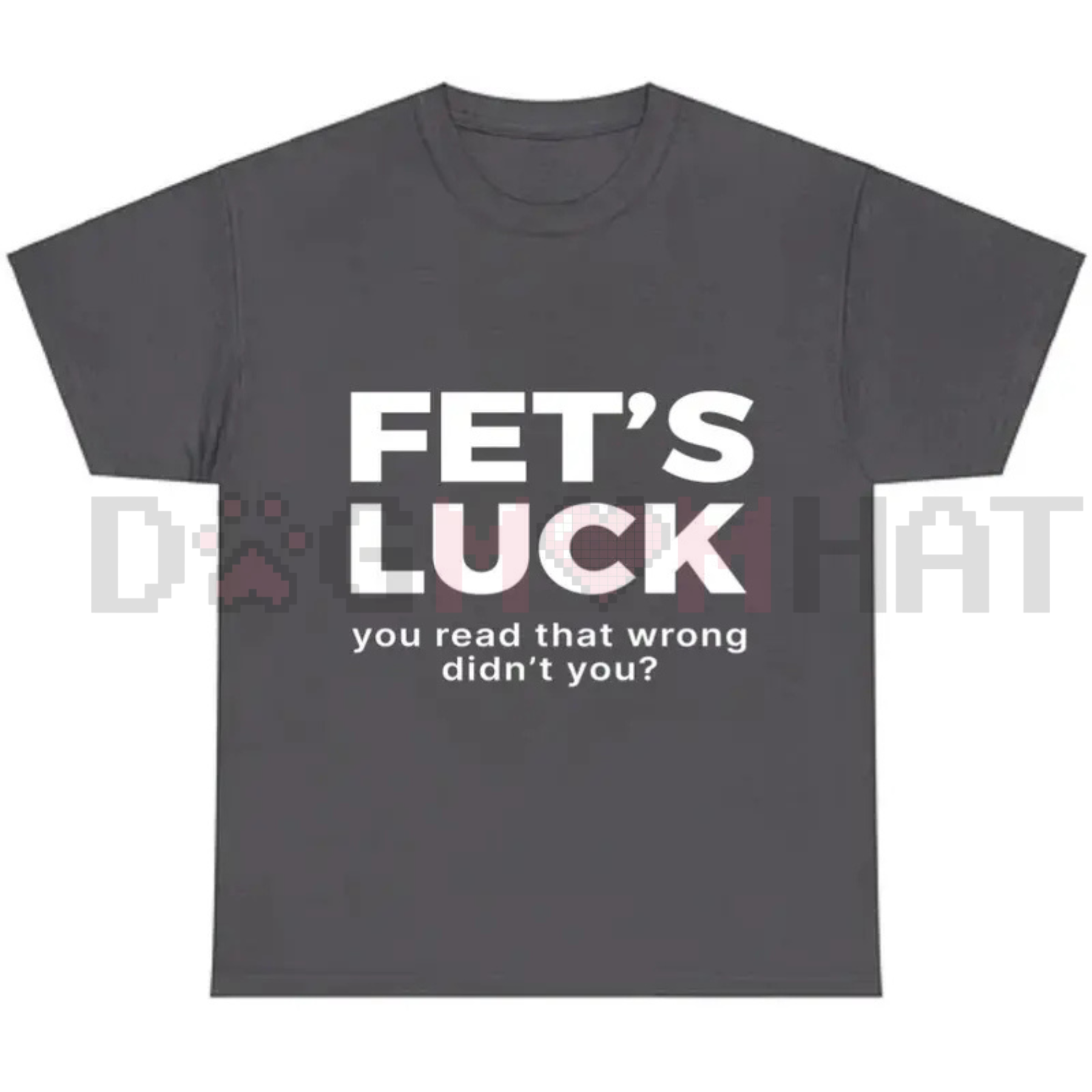 The FET’S LUCK Optical Trick Shirt is the ultimate piece of Trending Humor Tee apparel. This clever graphic is designed to fool the eye at first glance, revealing a common (and often explicit) phrase upon closer inspection, making it a masterclass in Clever Wordplay. It's the perfect shirt for those who love subtle humor and watching people do a double-take.
