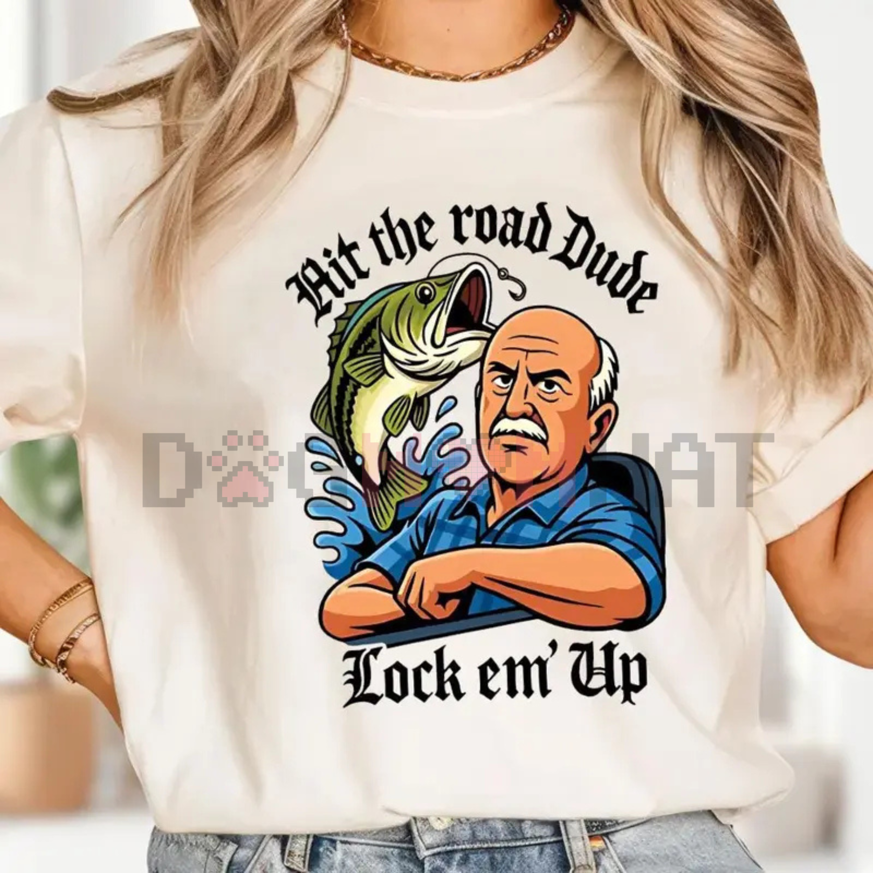 Funny Angry Old Man Driving Truck Shirt – "Lock 'Em Up" Sarcastic Humor Tee