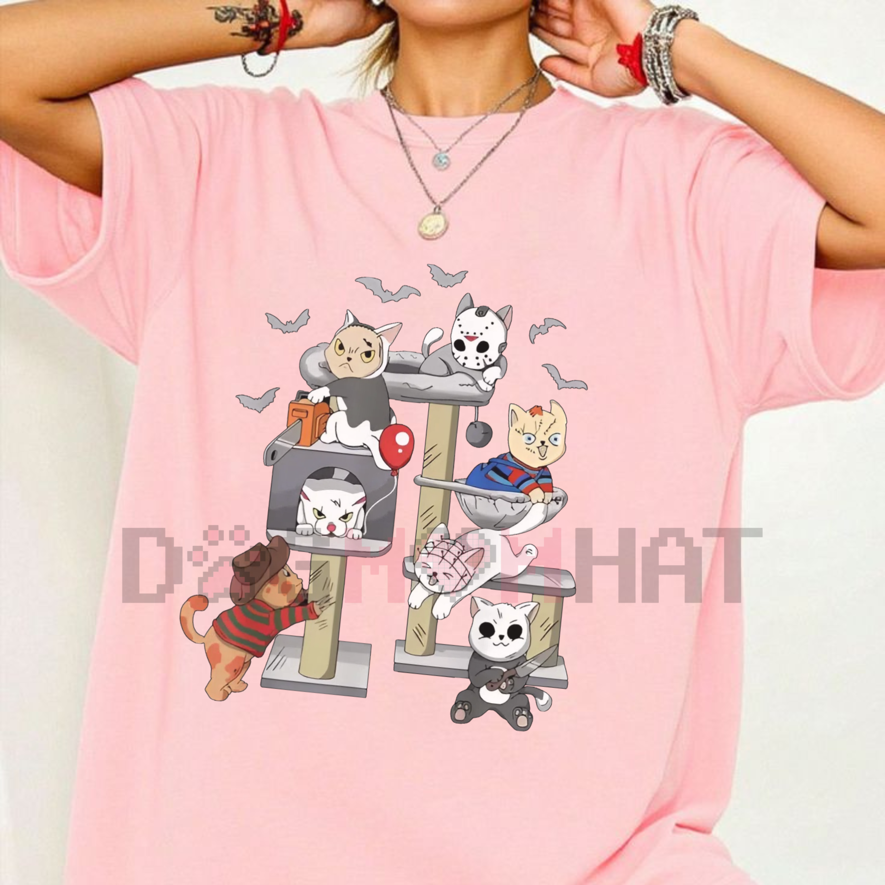 Funny Cat Horror Movies T-Shirt – Cute Halloween Cat Lovers Matching Tee