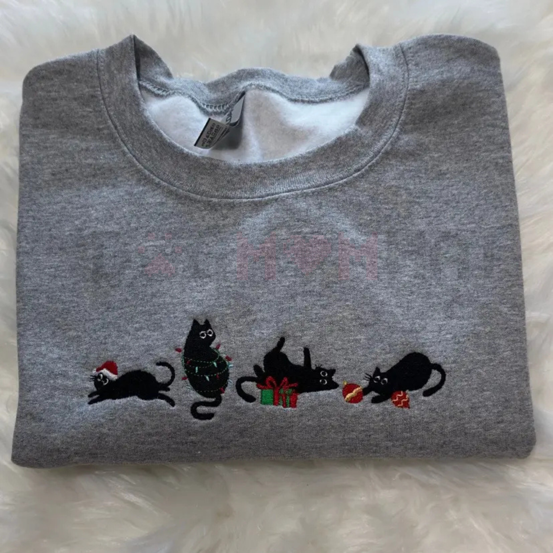 Goth Christmas Cats Embroidered Pullover – Dark Aesthetic Holiday Crewneck