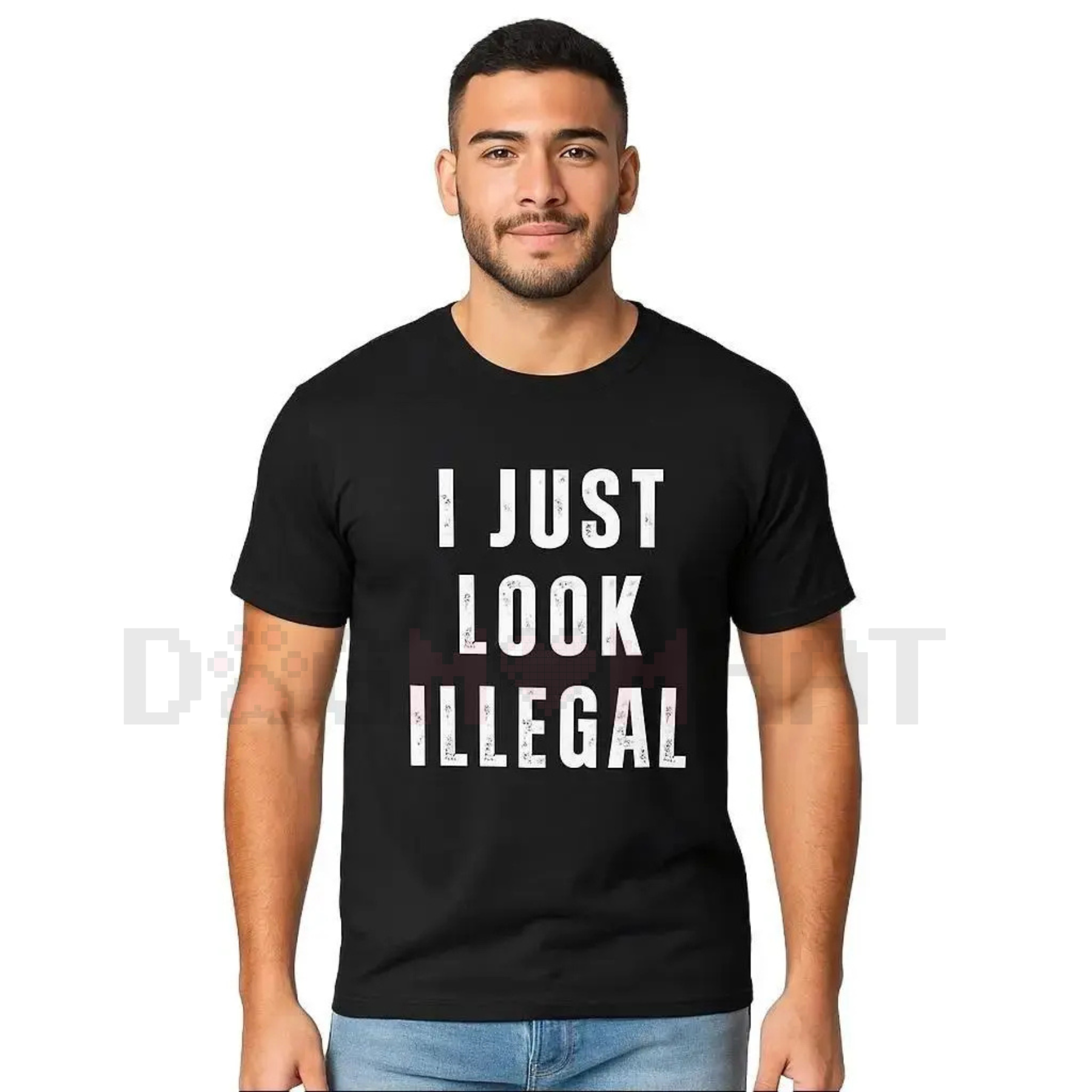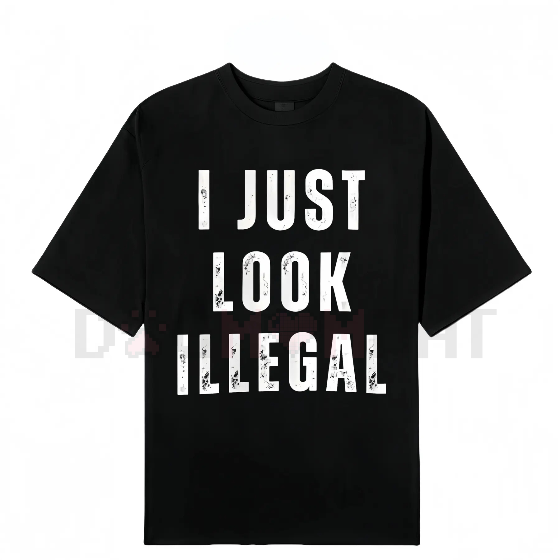 Bold Slogan: Features the funny, sarcastic, and impactful phrase: "I Just Look Illegal."