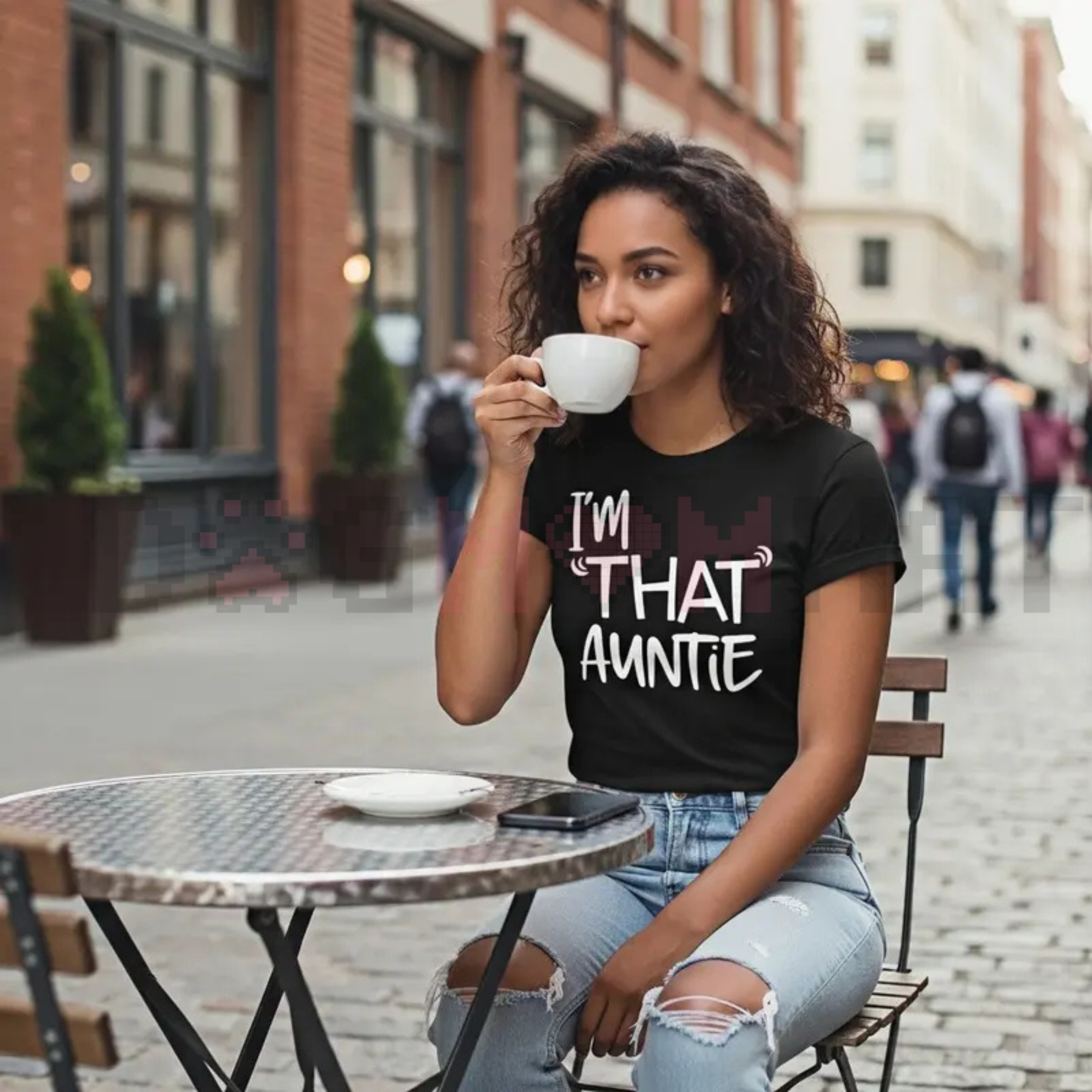 🤣 Funny Best Aunt Tee Features the proud, self-aware slogan: "I'm That Auntie" (implying she's the cool one).