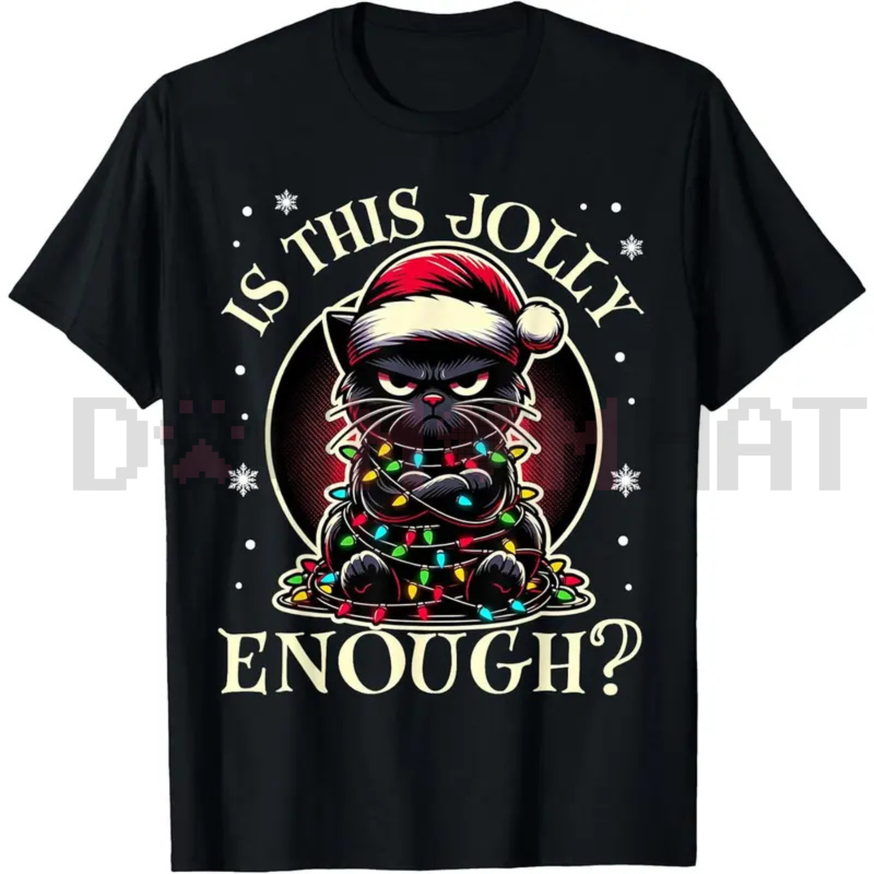 🐈⬛💡 The Cat Has Spoken. And It's Sarcastic. If your Christmas tree looks less like a magazine spread and more like a disaster zone thanks to your feline friend, the "Is This Jolly Enough" Funny Black Cat Christmas Tree Lights T-Shirt is for you! This shirt captures the hilarious reality of pet ownership during the holidays.