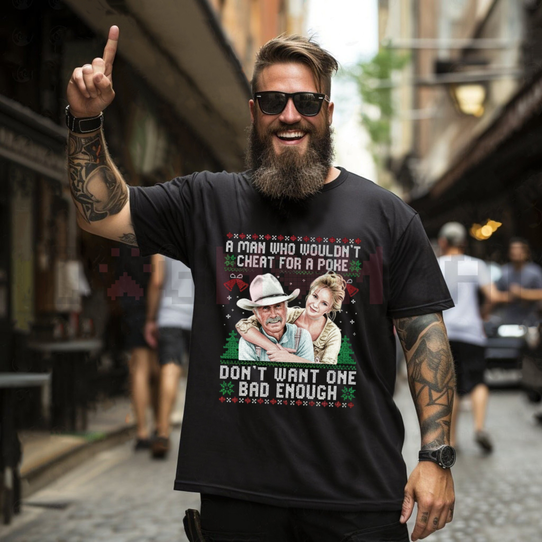Featuring a graphic that might include Gus, Call, or a dusty trail silhouette with a subtle Christmas reference, this shirt is the perfect piece of Rugged Cowboy Fan Apparel. Made from soft, durable cotton, it's comfortable enough for a long day's ride or a night of holiday party shenanigans. It’s an unforgettable Nostalgic Miniseries Gift for any fan who appreciates a deep-cut, dark-humored Western reference!