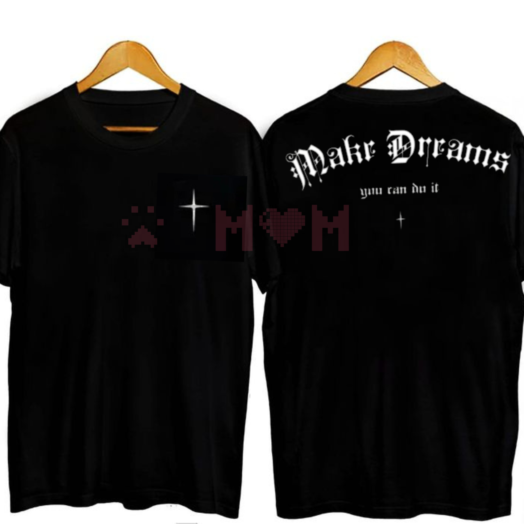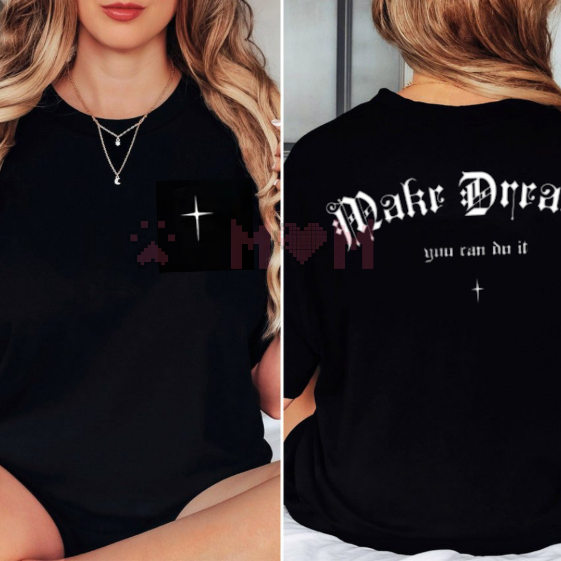 ✨💪 Dream Big. Work Hard. Believe in Yourself. Our Double-Sided "MAKE DREAMS / YOU CAN DO IT" T-Shirt is the perfect piece of apparel to keep you motivated and focused on your goals every single day! This tee features a powerful, dual-message graphic for maximum impact: