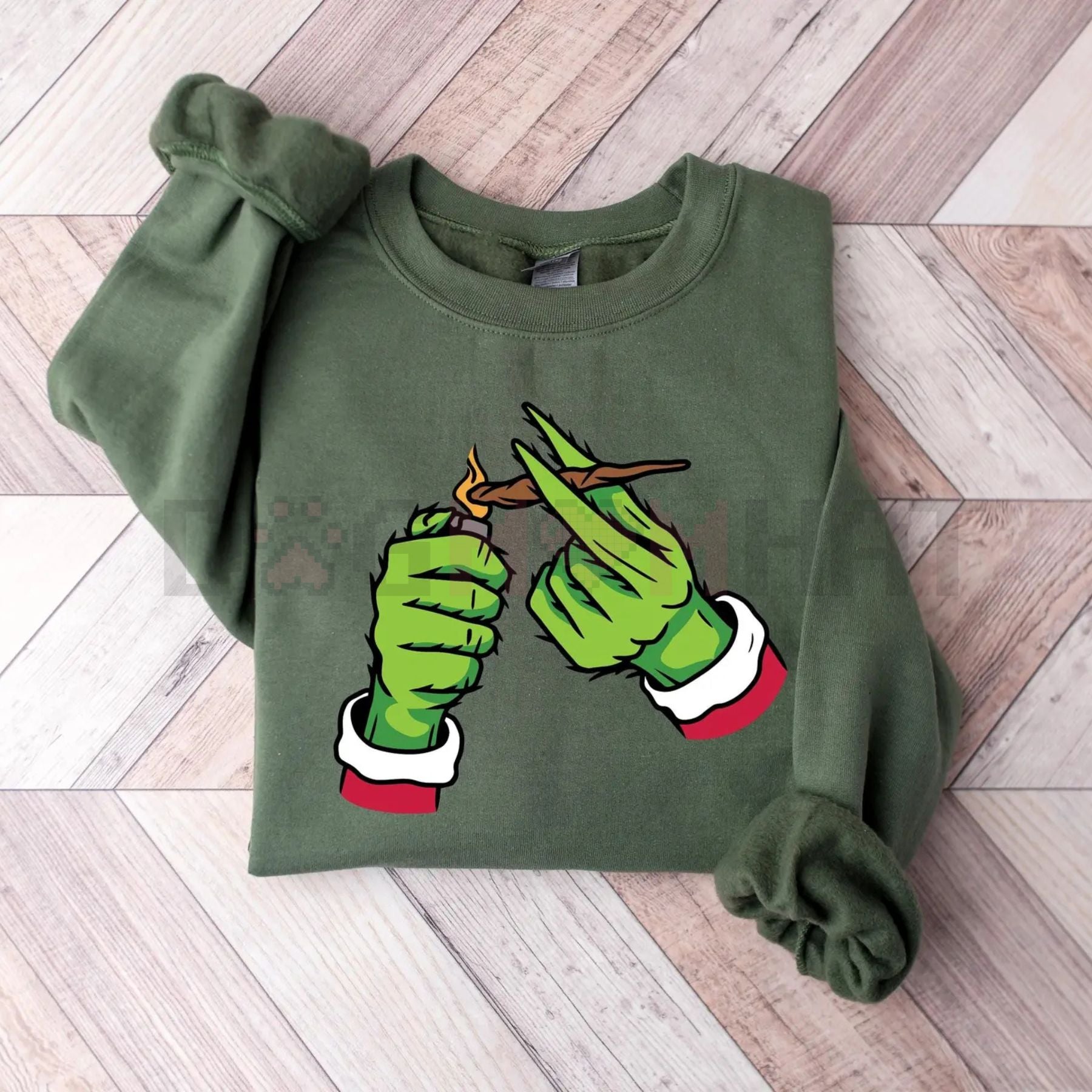 💨💚 Toke the Halls! It's Time for a Very Merry Weedmas. Light up your holiday cheer with the Mary Jane Grinchmas Christmas Cannabis Crewneck! This hilarious and cheeky sweatshirt celebrates the festive season with a fun, green twist, featuring a unique graphic often referred to as the Hand Christmas Weed Shirt or a nod to the Grinch's naughty side. It’s the perfect apparel for a truly Merry Weedmas.