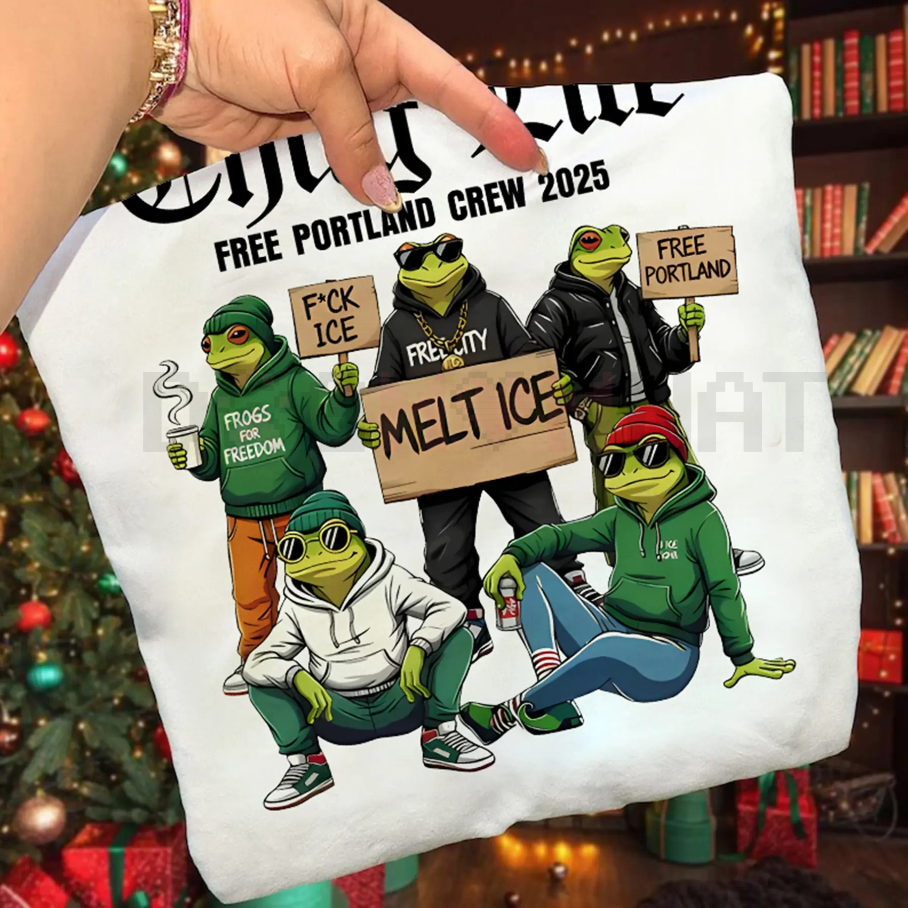 The main graphic features the powerful phrase "No Kings In America", rooted in historical American defiance, often accompanied by the encouraging slogan "Frogs Together Strong". This fun, viral aesthetic makes it the perfect Portland Political Statement Tee for those who appreciate sharp humor and active participation in civic life.