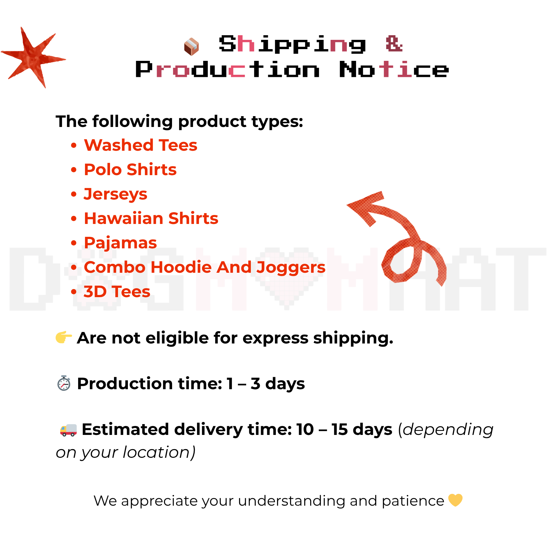 Order Processing and Delivery Times: During peak seasons or high order volumes, processing times may extend. We strive to deliver your order promptly and appreciate your understanding.