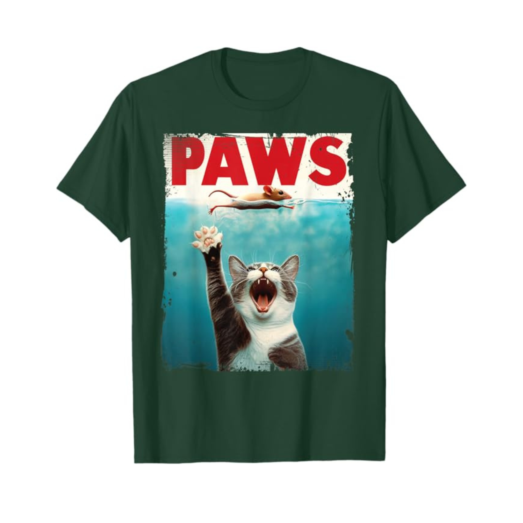 Get ready for a good laugh with our PAWS Parody Cat Mouse T-Shirt. This humorous tee takes a playful spin on a classic movie poster, featuring a cat in hot pursuit of a mouse. It’s the perfect shirt for any cat lover, movie buff, or anyone who appreciates a good dose of witty, pop-culture-inspired humor.