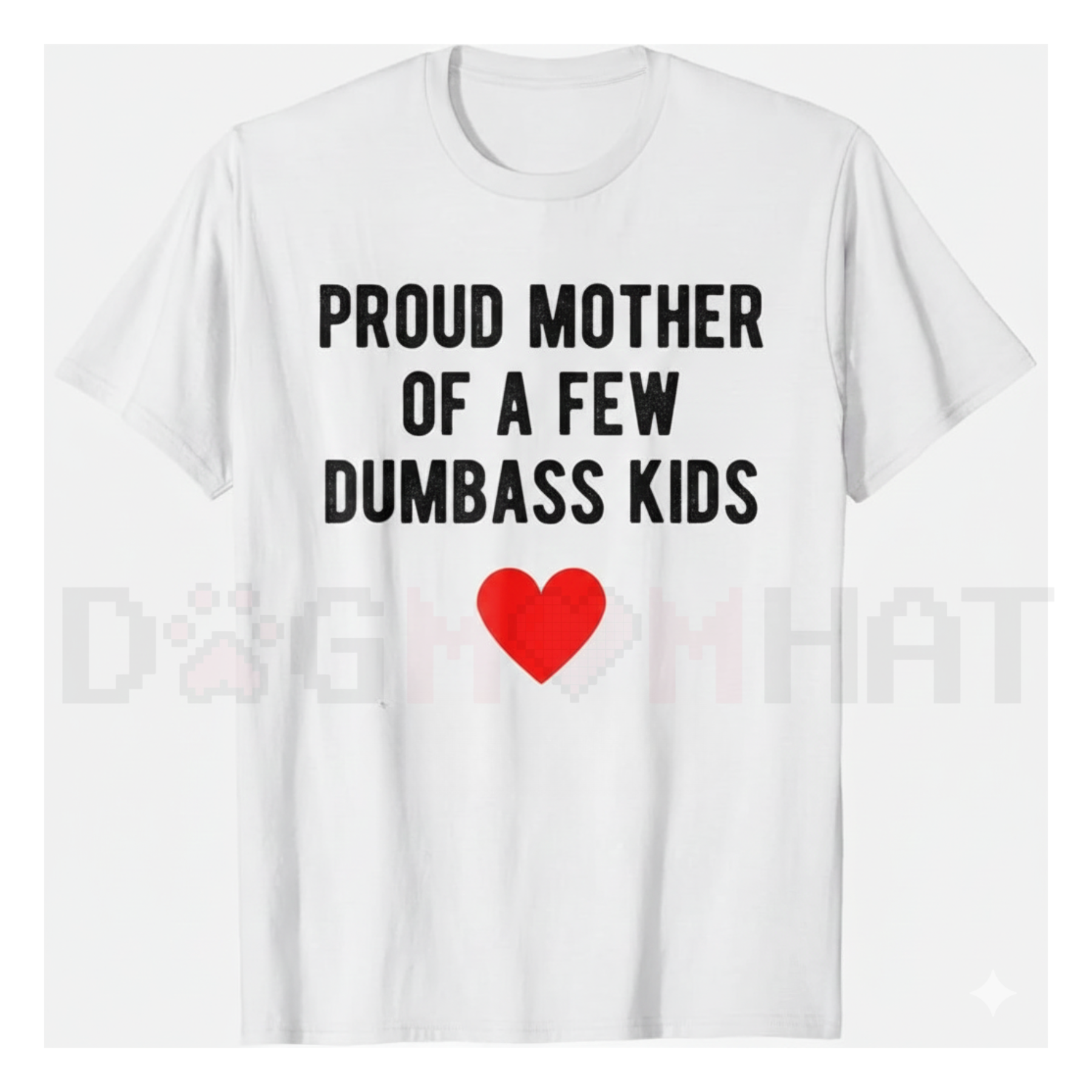 😂 Funny Mother's Day Slogan Features the bold, hilarious, and deeply honest statement: "Proud Mother of a Few Dumbass Kids."