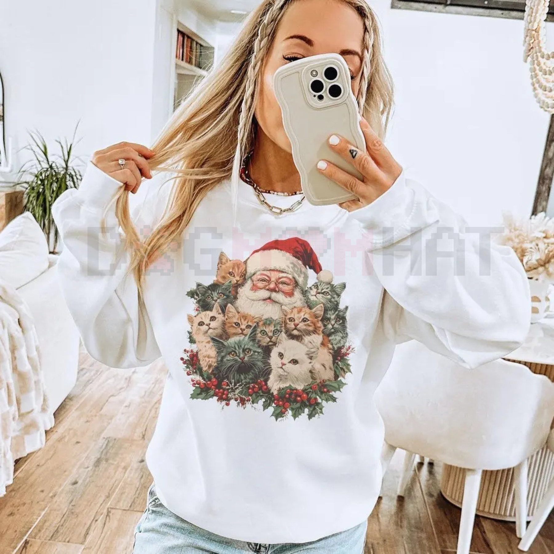 Don't wait for Santa's sleigh! Order your Retro Santa and Kittens Sweatshirt today.