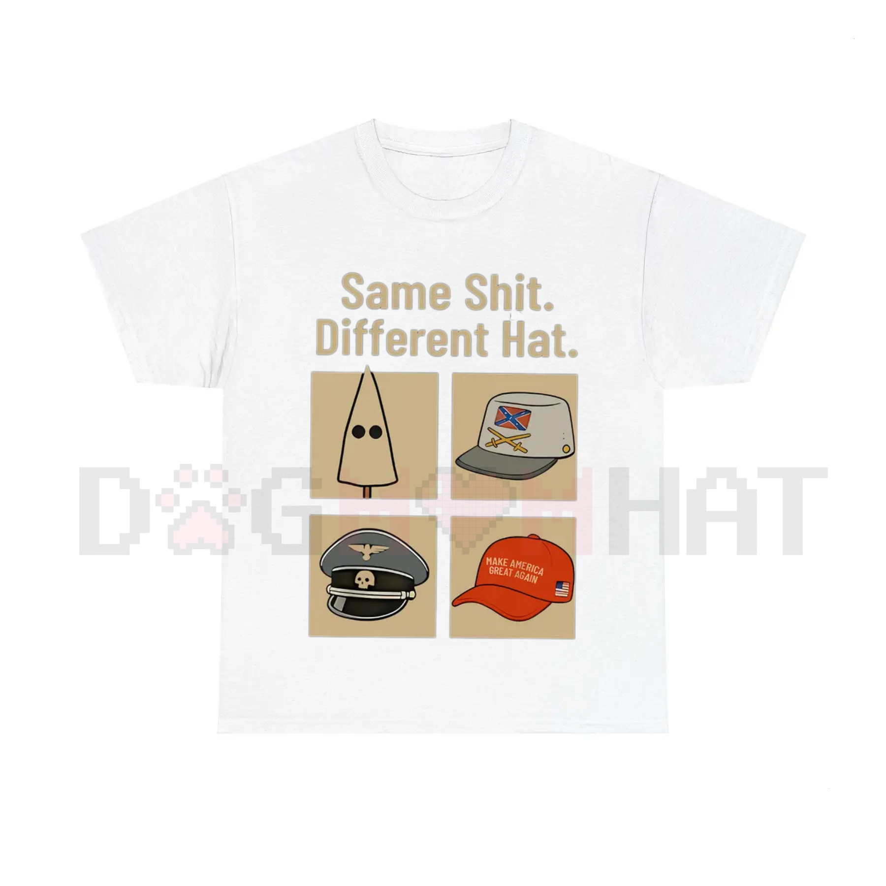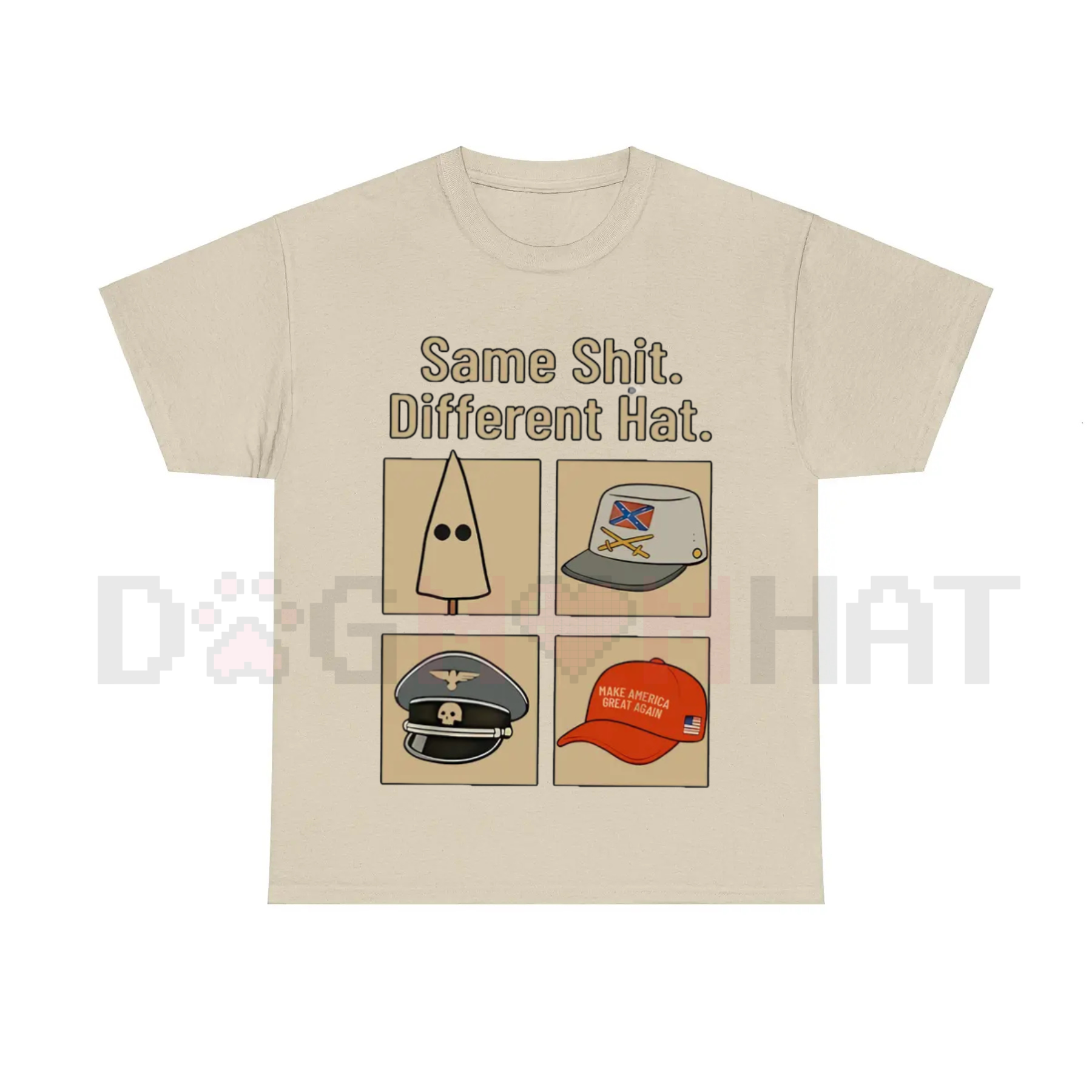 🎩🔄 New Boss? Same Policy. The Truth is Always Funny. Our "Same Thing Different Hat" T-Shirt is a must-have for every voter and political observer who appreciates satirical and dark humor in their commentary. This tee is a clever, biting take on the cyclical nature of politics and power, making it a perfect Funny Protest Graphic Shirt. It’s the ultimate top for rallies, debates, watching the news, or just a casual day out showing your sharp, cynical wit.