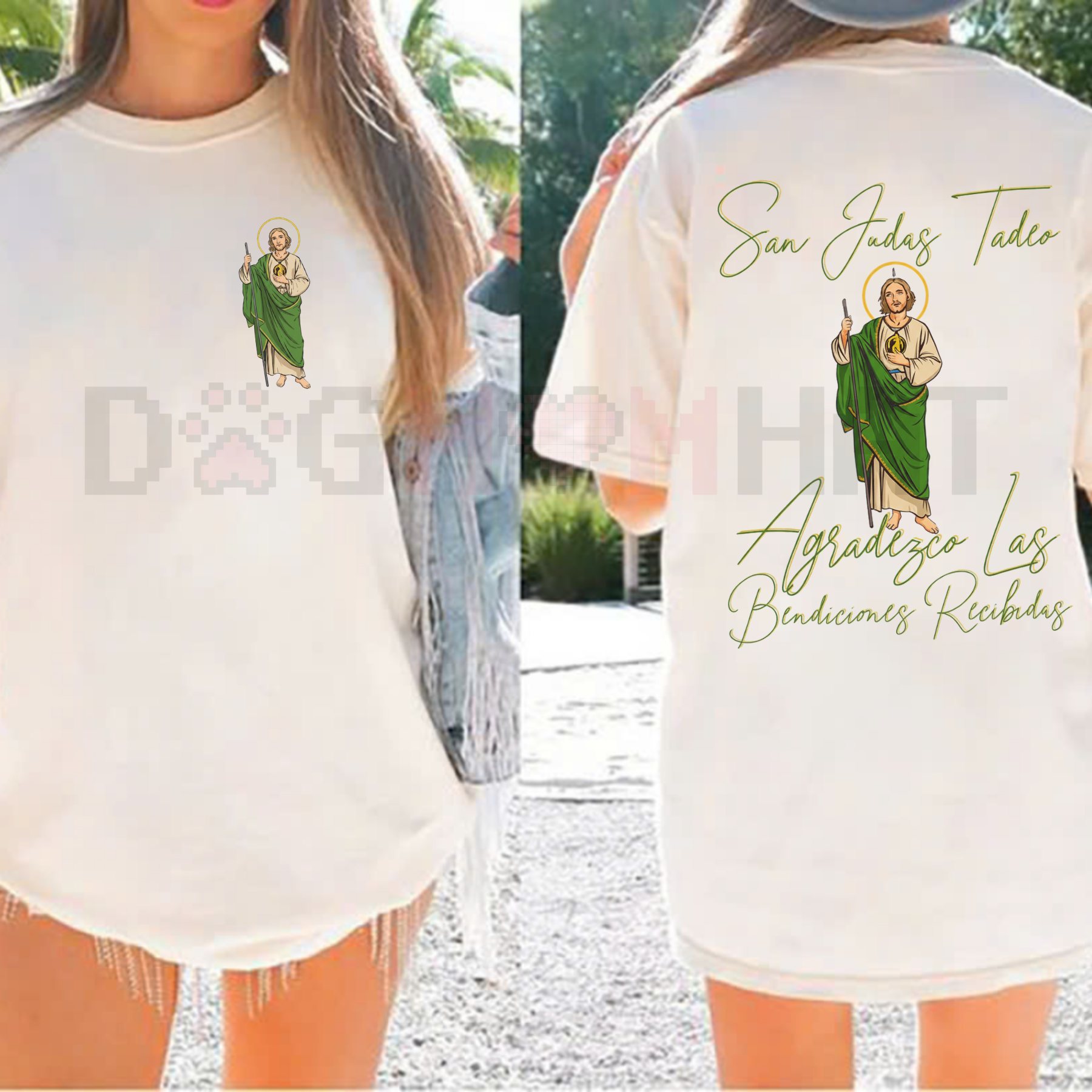 San Judas Tadeo Latino 2 Sides T-Shirt – Classic Cotton Fabric, Religious & Cultural Graphic Tee