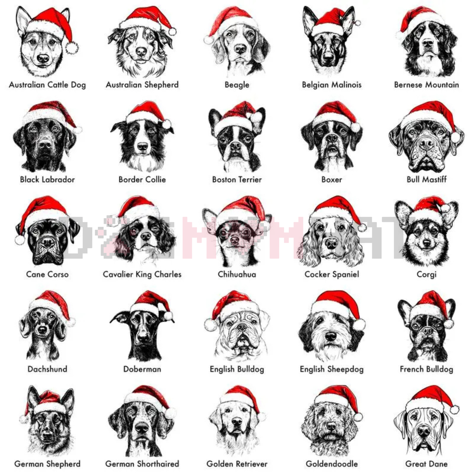 Dog Lover Theme: Features 50 Dog Breeds wearing festive Santa Hat accessories.