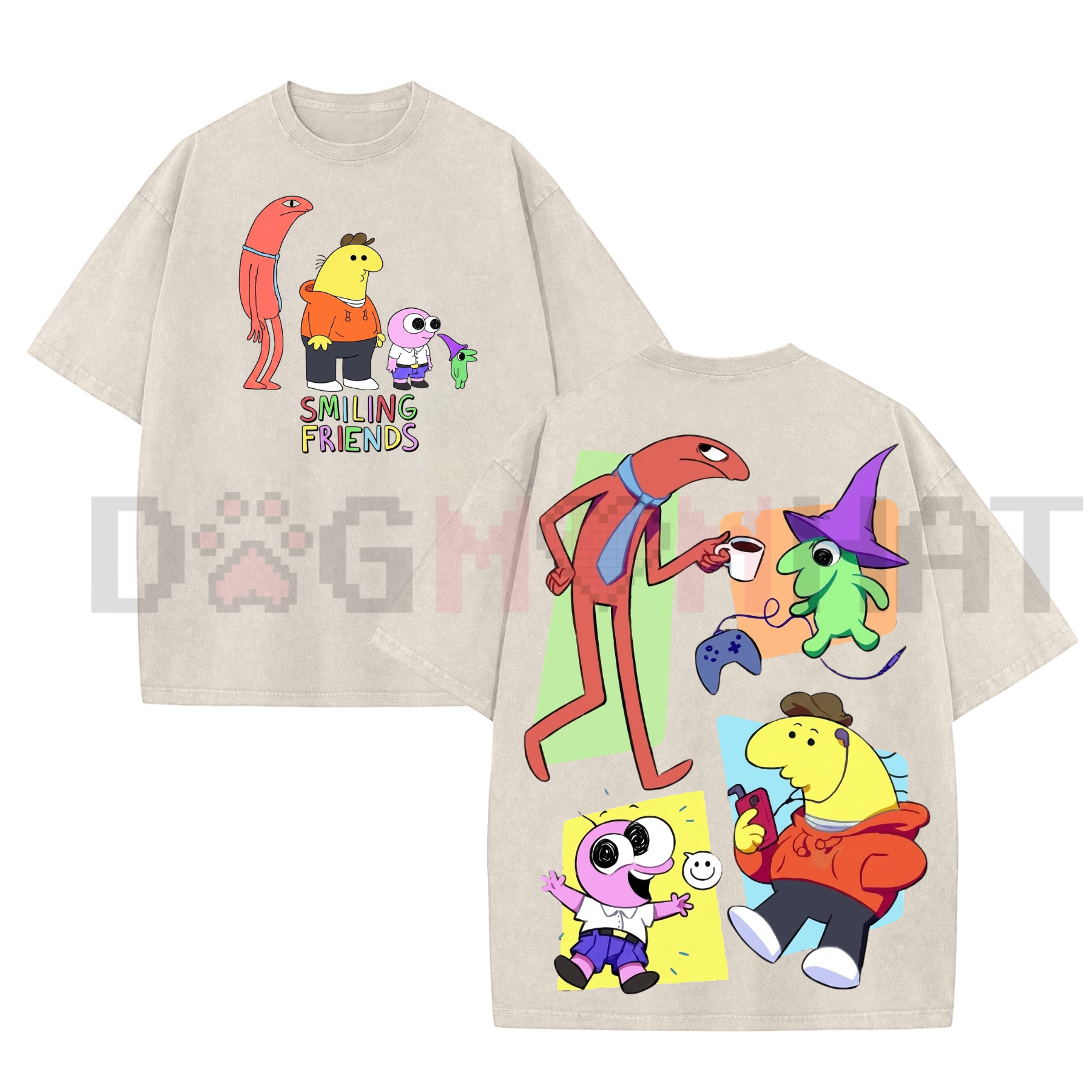 🌈🏢 Helping You Smile (In Style). The job is simple: make people smile. The outfit is even simpler: the Smiling Friends Vintage Washed Tee. Featuring the chaotic and lovable crew from the hit adult animation, this shirt is designed for the fans who live for the surreal, the awkward, and the hilariously bizarre world of Pim, Charlie, and the gang.