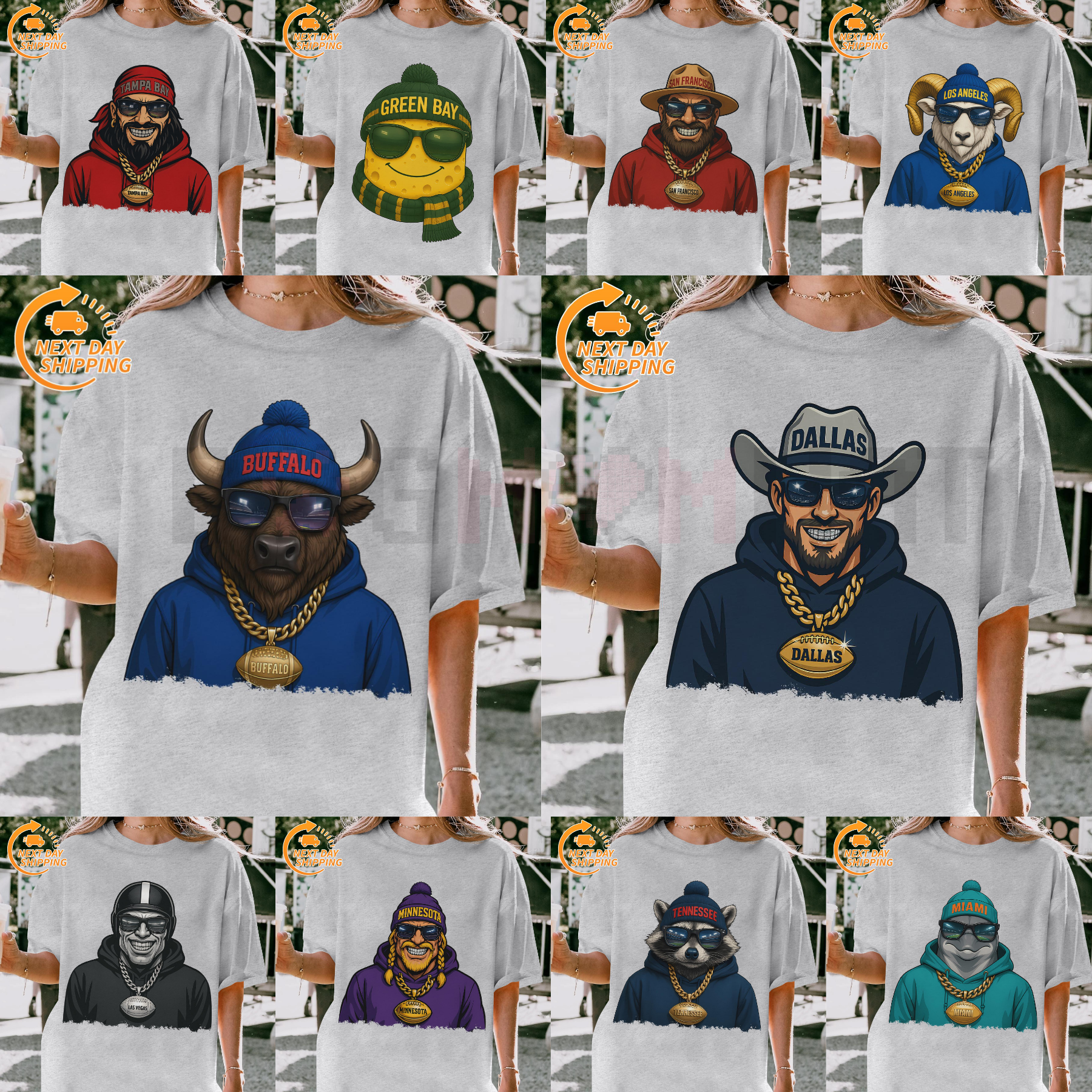 Custom Team Mascot Shirt: The design is often customizable or specifically tied to your chosen city/team for maximum fan appeal.