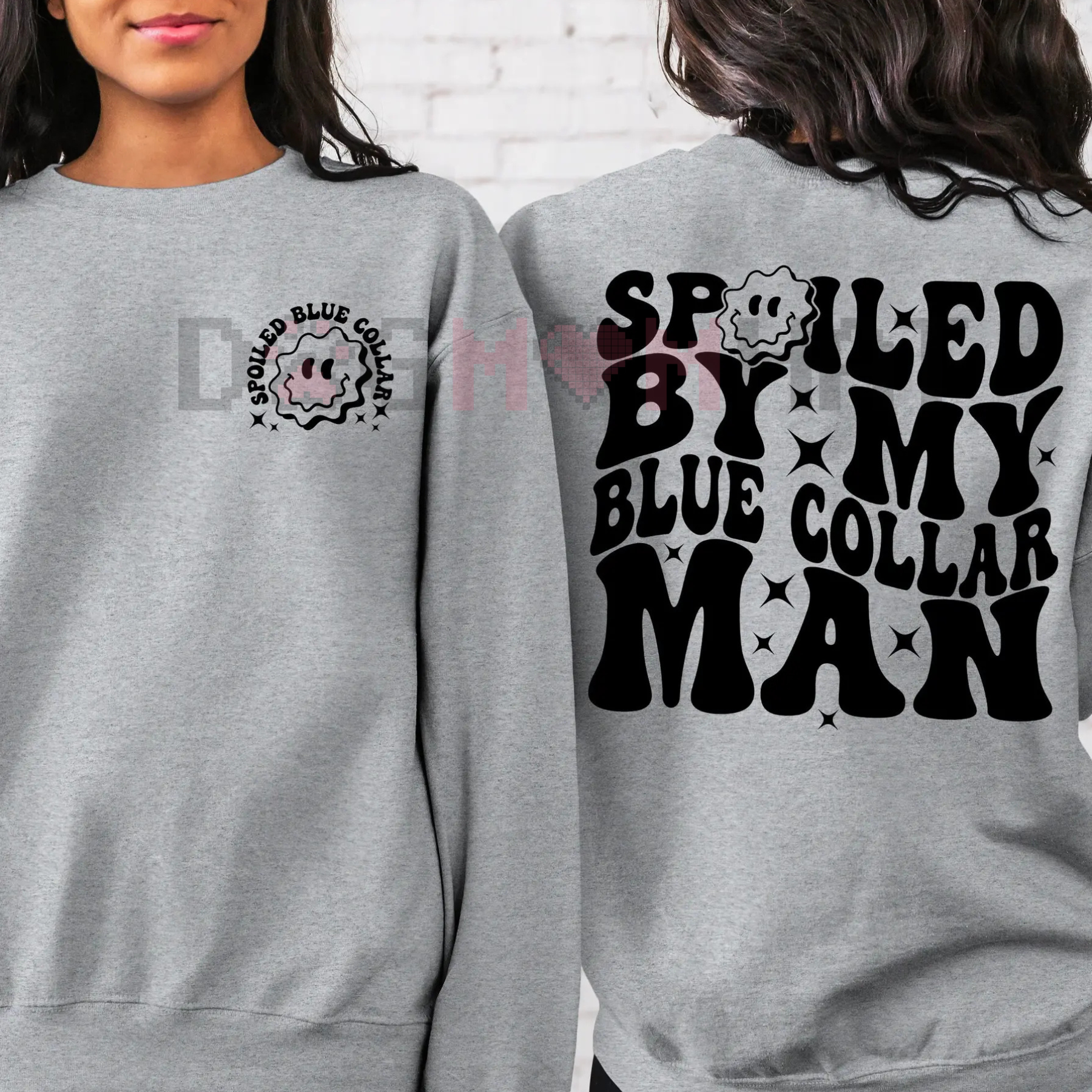 "Spoiled by My Blue Collar Man" Sweater – Cozy Crewneck, Love & Appreciation Gift for Her