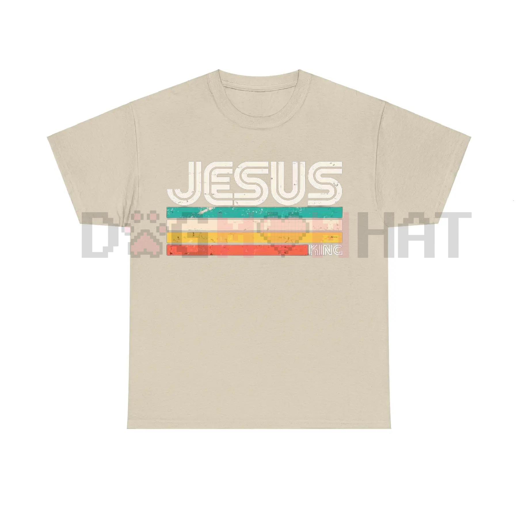 Vintage "Jesus King" T-Shirt – Classic Christian Cotton Menswear Tee, Retro Religious Graphic Shirt