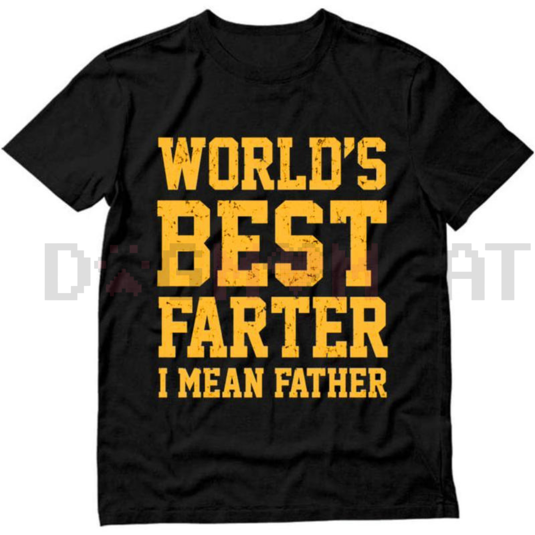 Punny Slogan: Features the classic, hilarious wordplay: "World Best Farter I Mean Father."